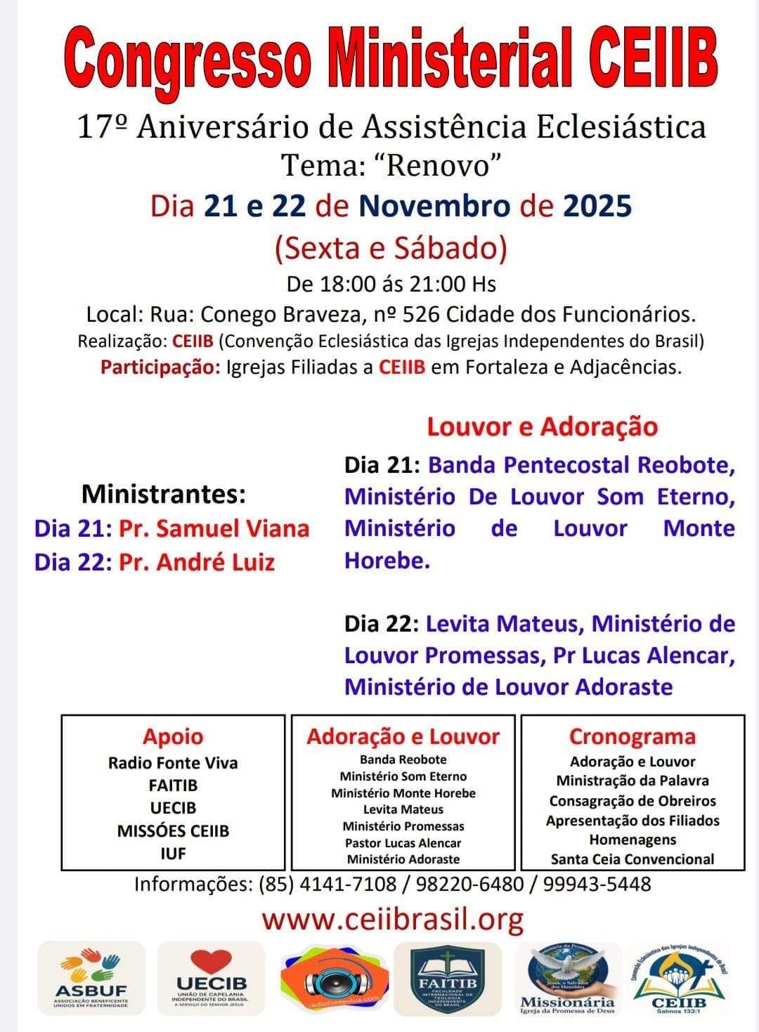 A CEIIB oferece suporte completo para igrejas evangélicas, apóstolos, bispos, pastores (as), missionários(as) e levitas, garantindo assessoria jurídica, contábil e eclesiástica de excelência para fortalecer sua missão no Brasil.